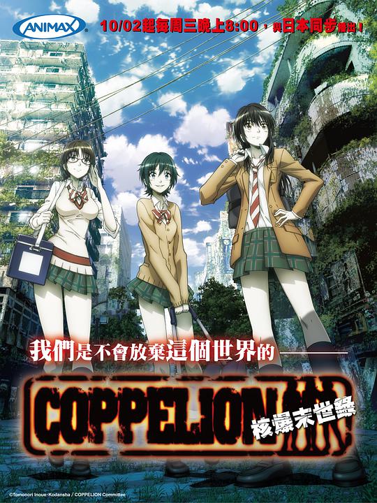 近未来,当年繁华喧嚣的东京因核电站事件变成了死城,被成为世界第一大幽灵城市。然而即便在这座死寂的废墟中,仍有幸村者盘桓于此。20XX年,三名没有配备任何防辐射装备的少女出现在旧东京。她们名叫成濑荆(户松遥配音)、深作葵(花泽香菜配音)、野村妙子(明坂聪美配音),是通过遗传基因改造生下来天生具有抗辐射能力的少女,统称“COPPELION”。在防卫大学附属特别工科学校教官三岛鬼兵陆佐(小山力也配音)的指挥下,少女们四处搜索幸存者,前所未有的经历以及感受接踵而至,少女们的心中作何感想……本片根据井上智德的漫画原作改编,COPPELION少女们的姓氏均来自日本著名导演,普通人姓氏则来自日本的文豪作家。